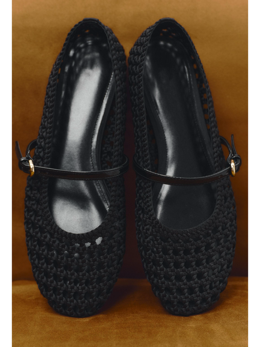 Черни полупрозрачни мрежести балетки Mary Janes с кръгъл връх