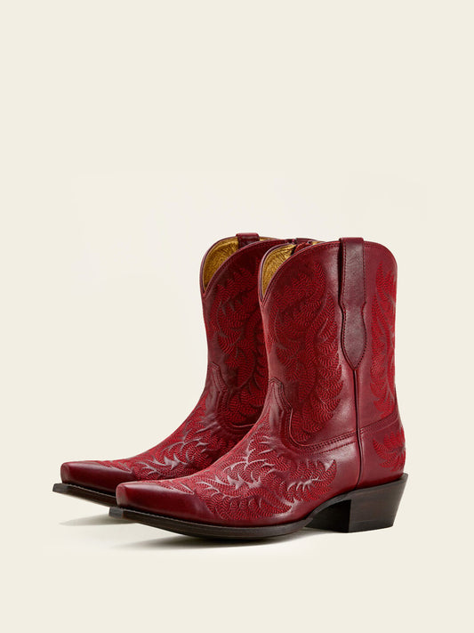 Каубойски ботуши с бродерия и цип, къси пръсти до средата на прасеца - червени
