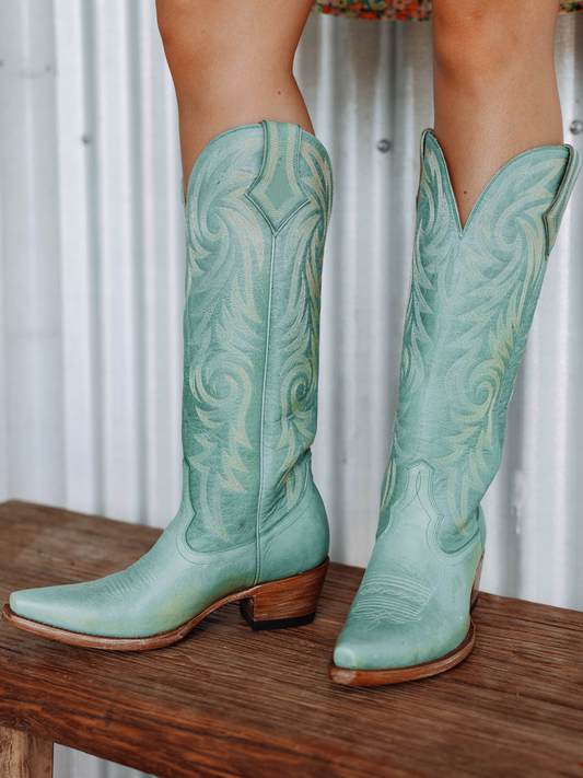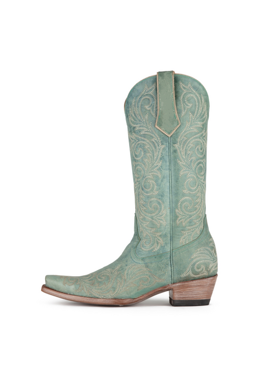 Широки каубойски ботуши до средата на прасеца с бродерия Aqua Snip Toe