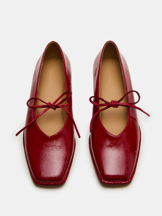 Пакетирани червени балетки Mary Janes с квадратни пръсти и панделка