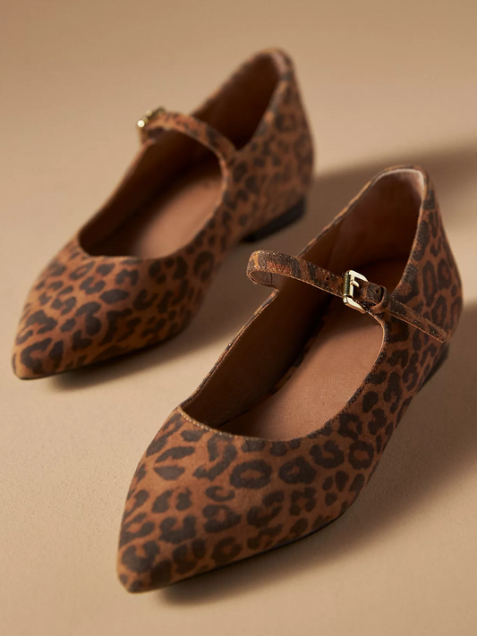 Леопардови балетки Mary Janes с изкуствен велур и заострени пръсти