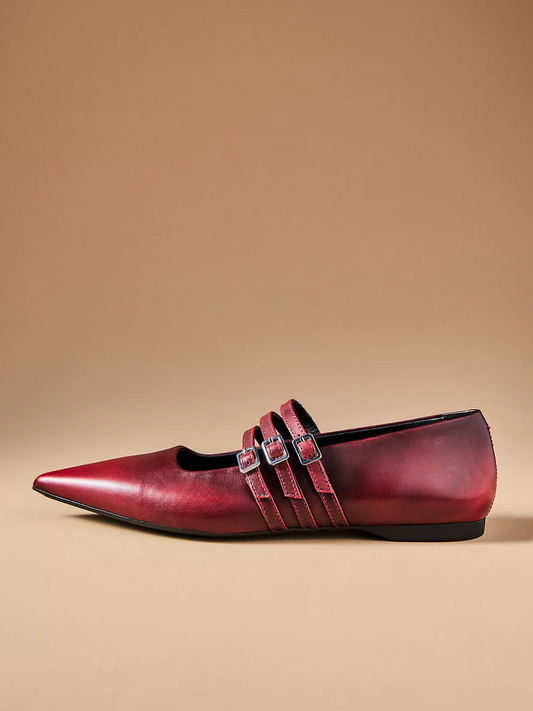 Червени обувки с три каишки и мост с остър връх
