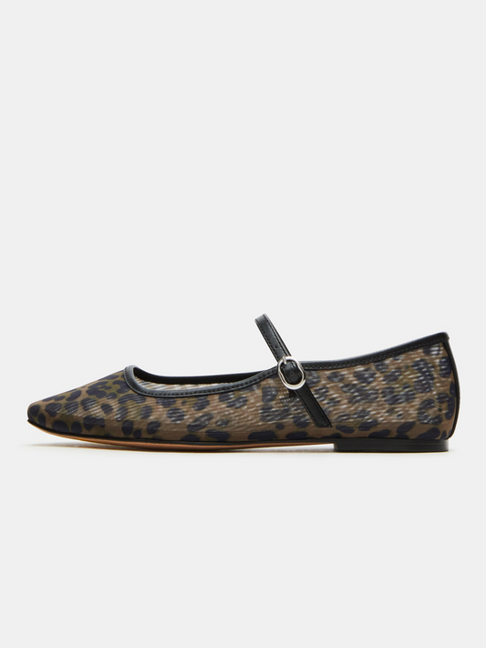 Леопардови, мрежести, с квадратни пръсти, балетки Mary Janes с мост и презрамка