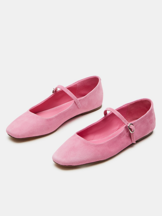 Розови балетки Mary Janes с квадратни пръсти и мостова презрамка от изкуствен велур