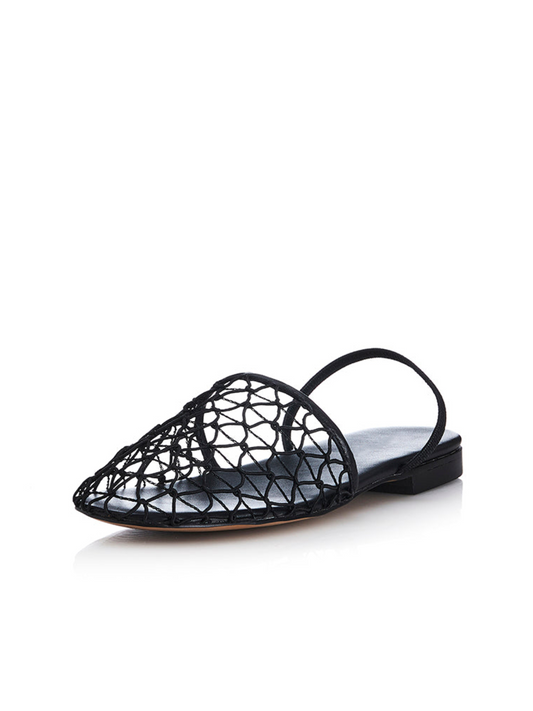 Черни мрежести равни обувки с кръгли пръсти и презрамка отзад