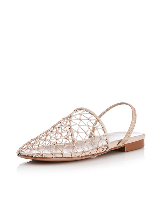 Кремови мрежести равни обувки с кръгли пръсти и презрамка отзад