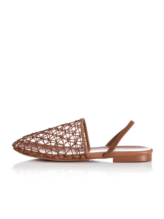 Кафяви, мрежести, равни обувки с кръгли пръсти и презрамка за гърба