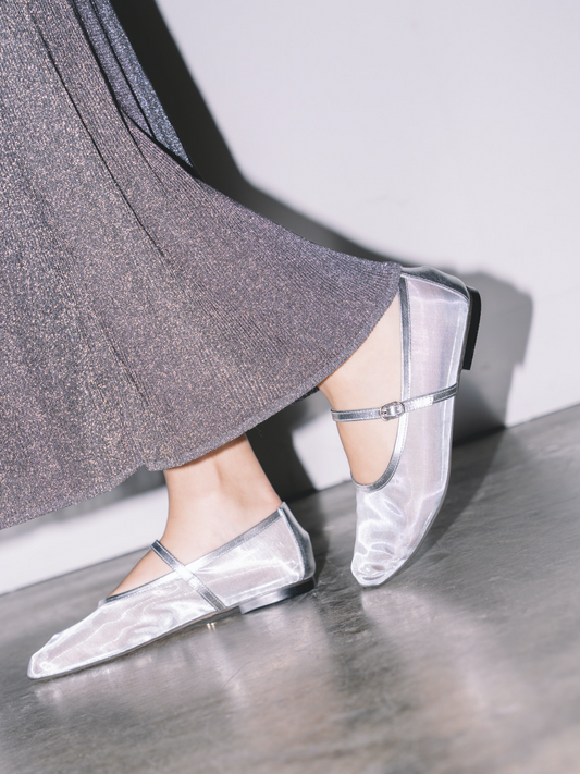 Металически сребърни мрежести обувки Mary Janes с квадратни пръсти и регулируема презрамка