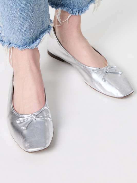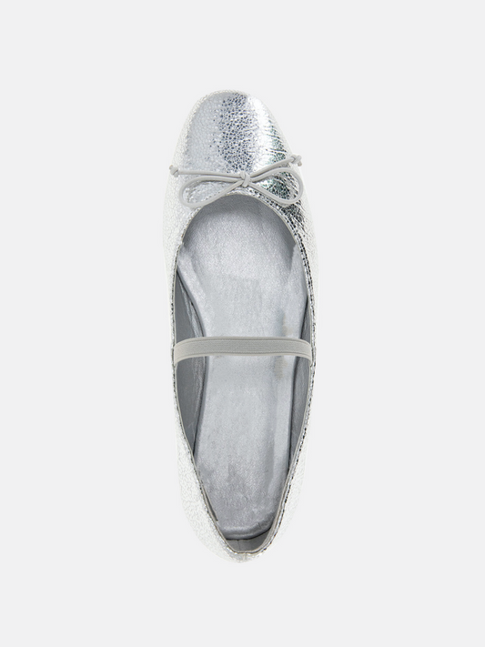 Металически сребърни балетки Mary Janes с панделка и квадратни пръсти, изработени от змийска кожа