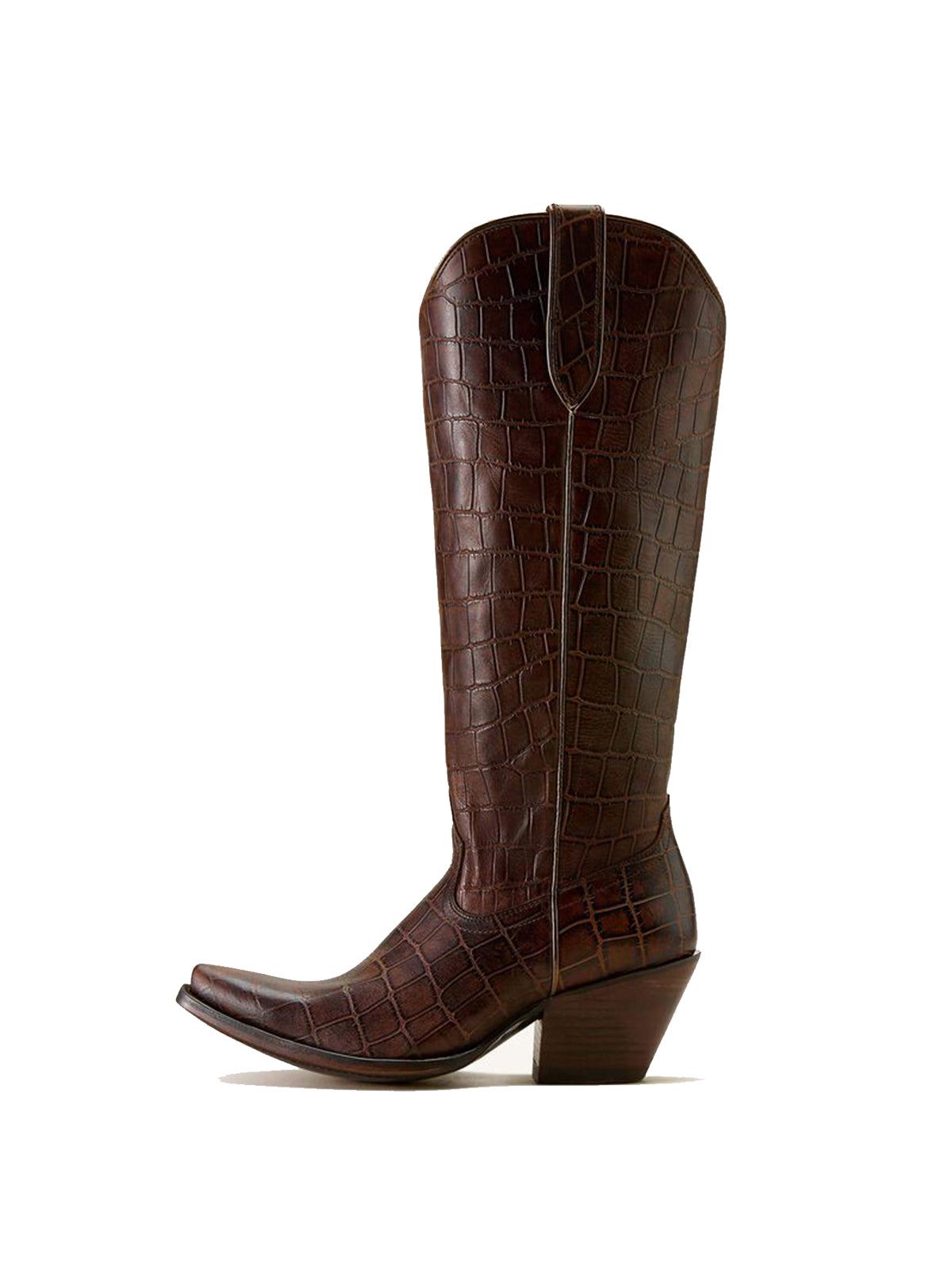Тези ботуши се отличават с отличителен завършек с принт на камъни и остър силует с къси пръсти за здрав, но изискан западен вид. Удобният дизайн с полуцип добавя лекота към ежедневното ви носене, а структурираният цип до коляното осигурява уверен стил с всяка стъпка.