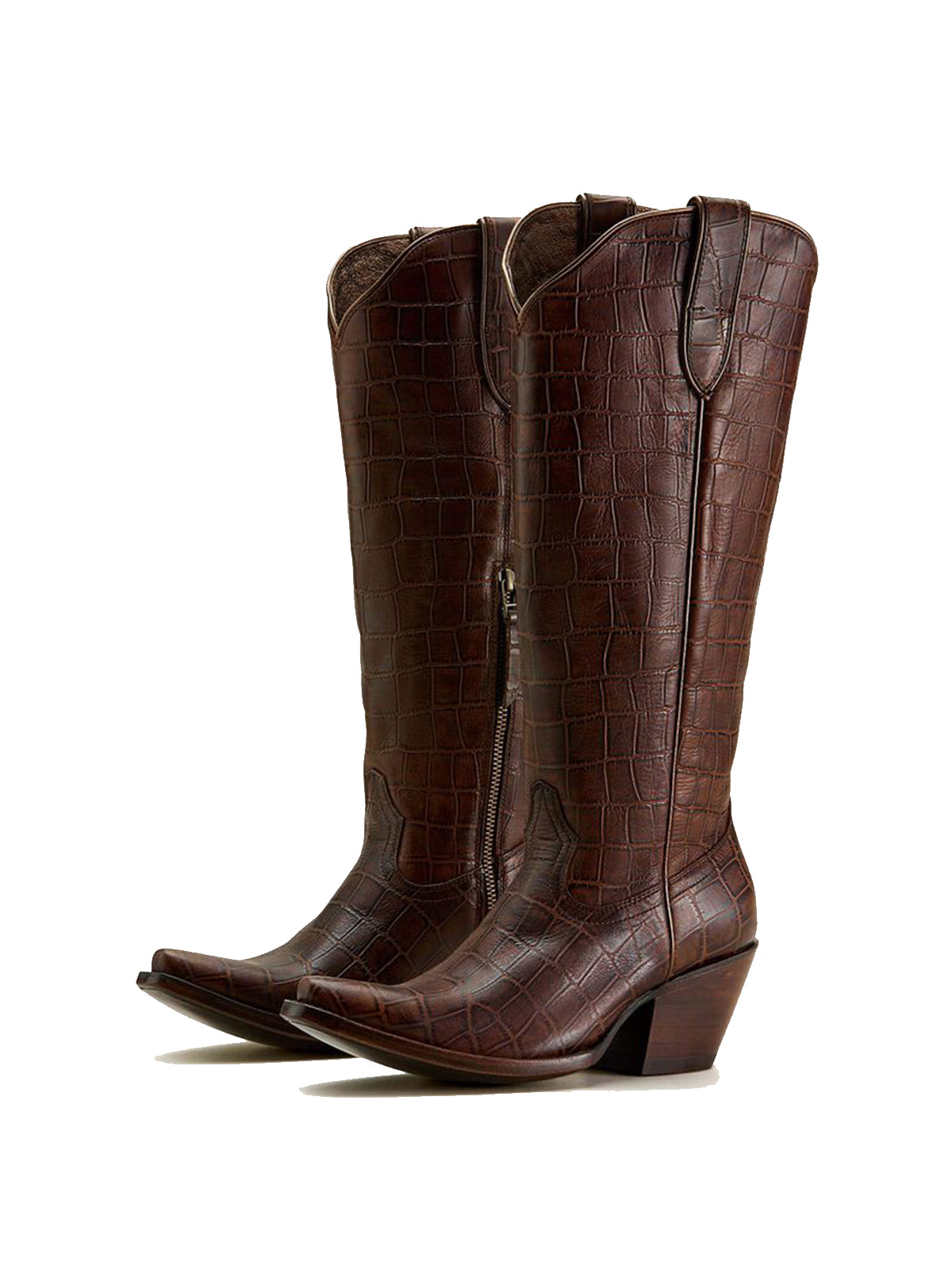 Каубойски ботуши до коляното с щампа от кафеени камъни, къси пръсти и цип с половин цип