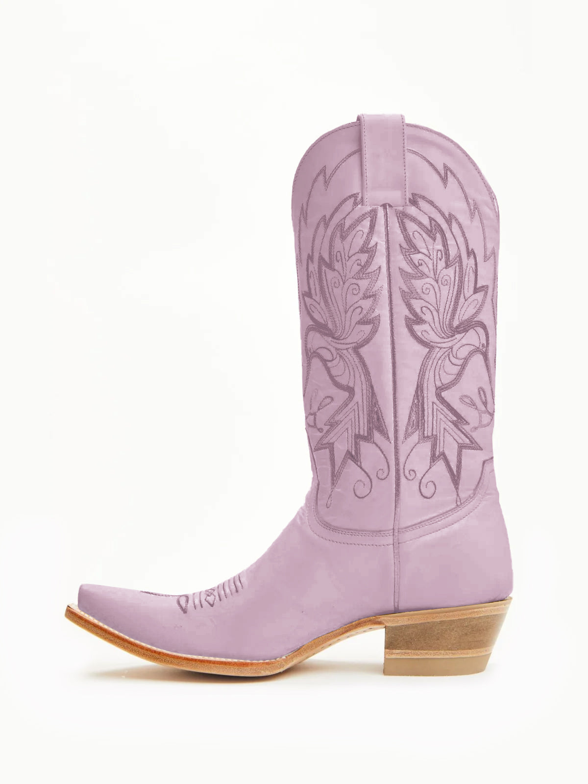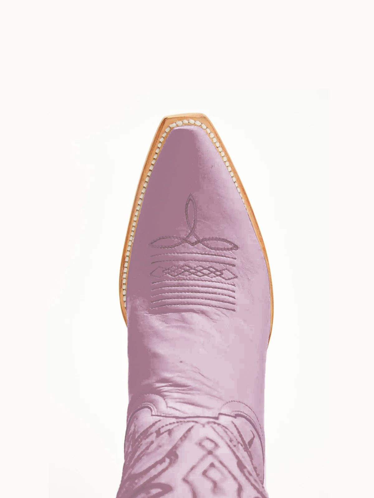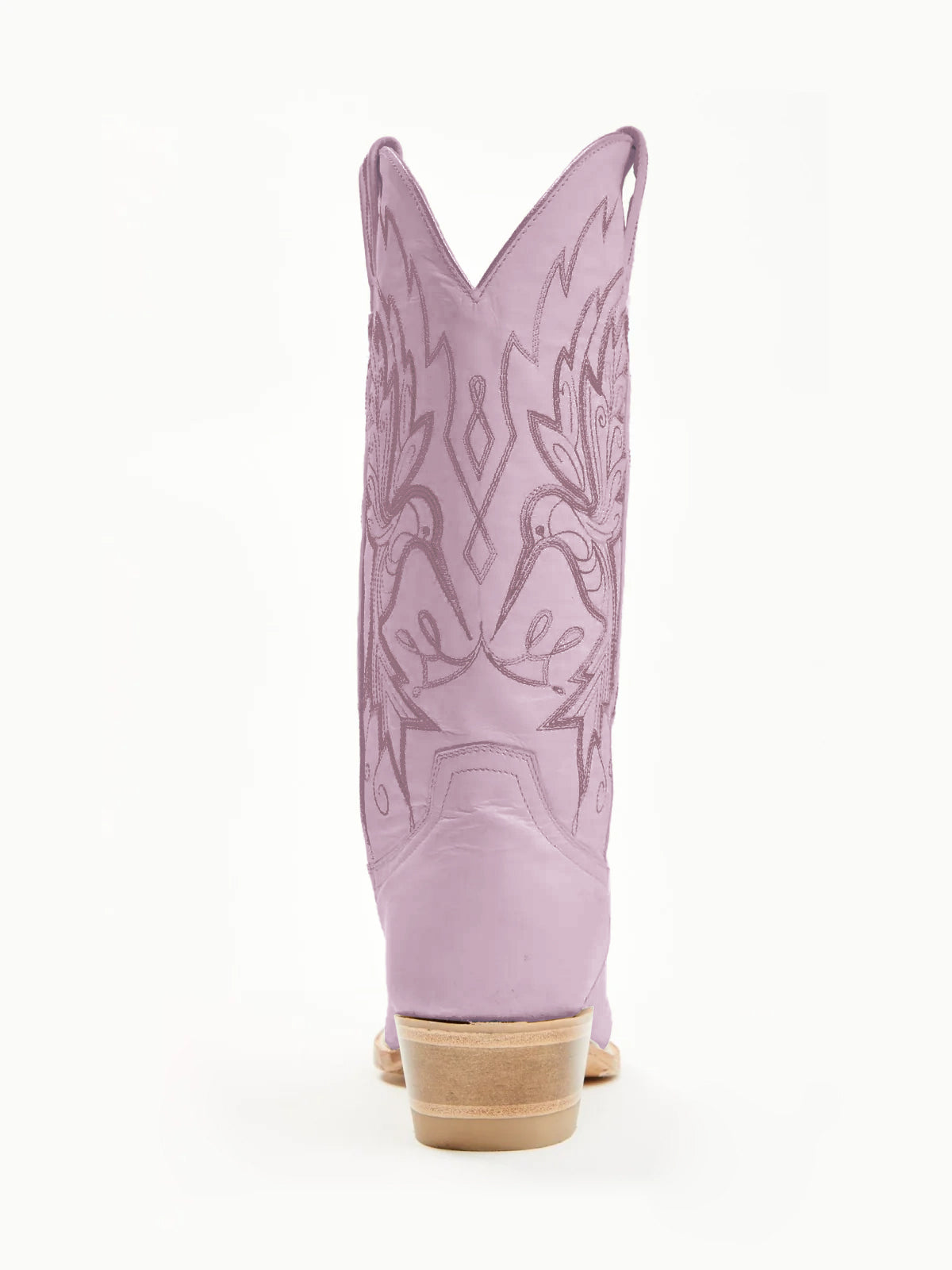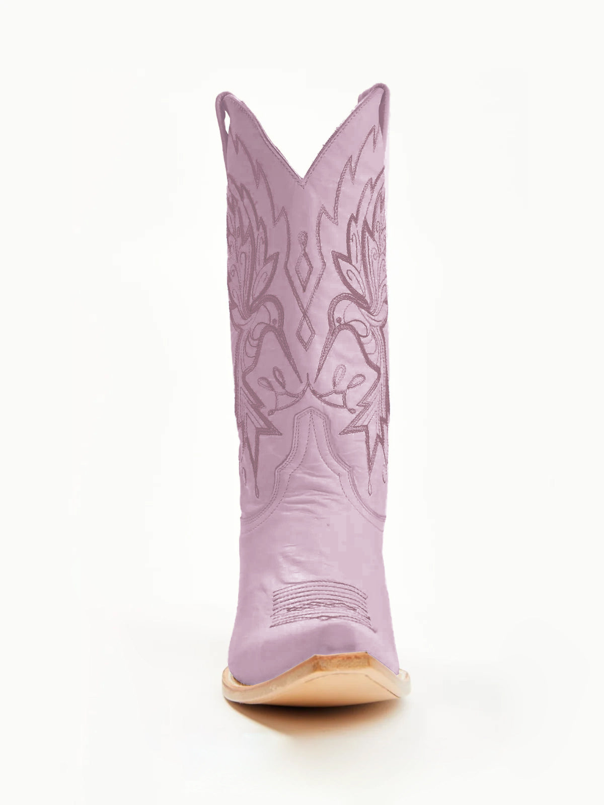 Каубойски ботуши до средата на прасеца с бродерия от лавандулови къси пръсти и ярки птици