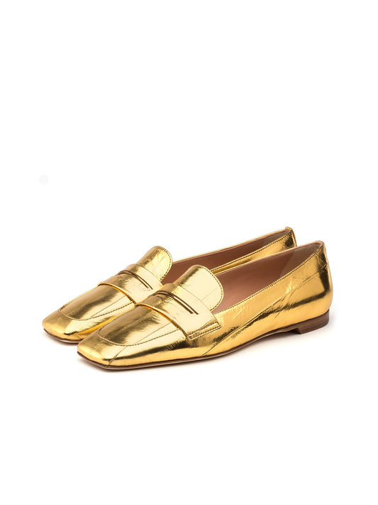 Metallic Gold Eel Pattern Square-Toe Slip-On Flats