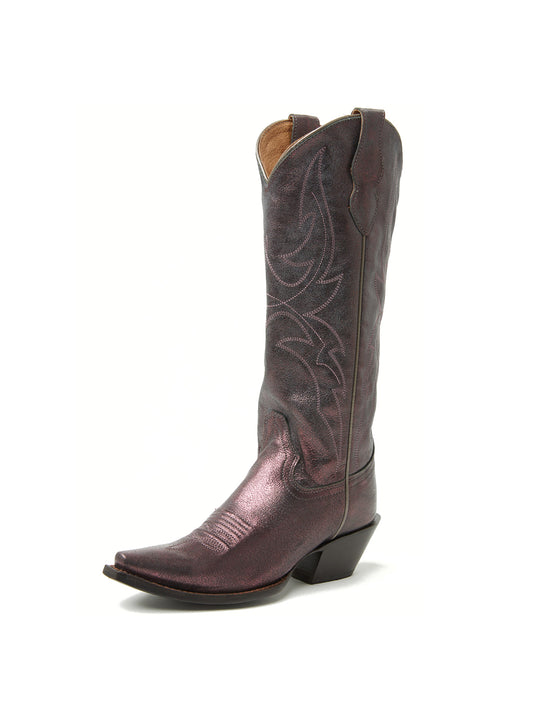 Metallic Pewter Snip-Toe Embroidery Wide Calf Knee High Cowgirl Boots