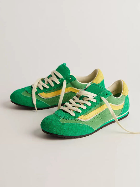 Green Faux Suede Round-Toe Lace-Up Flats Sneakers