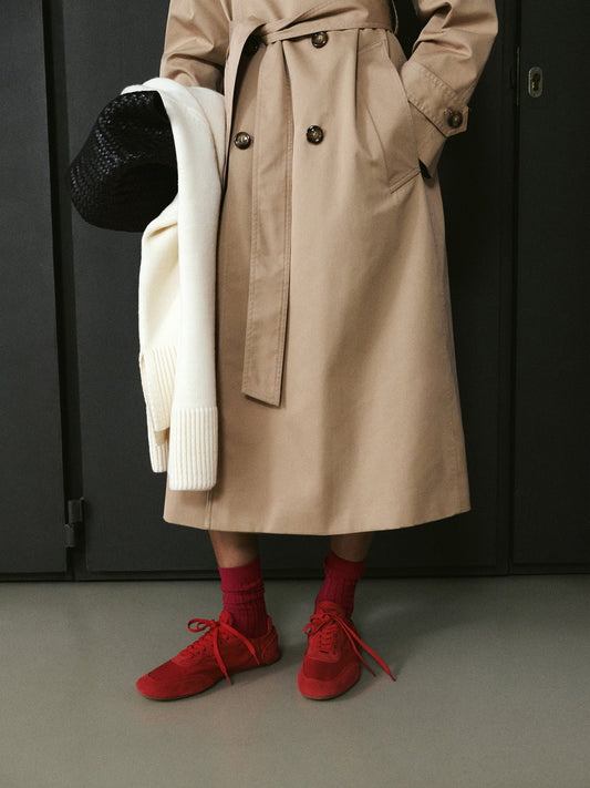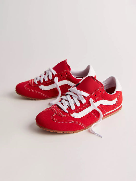 Red Faux Suede Round-Toe Lace-Up Flats Sneakers