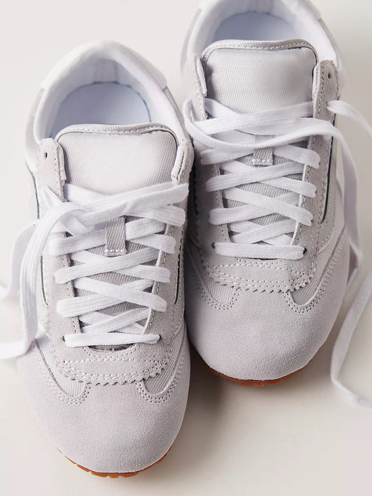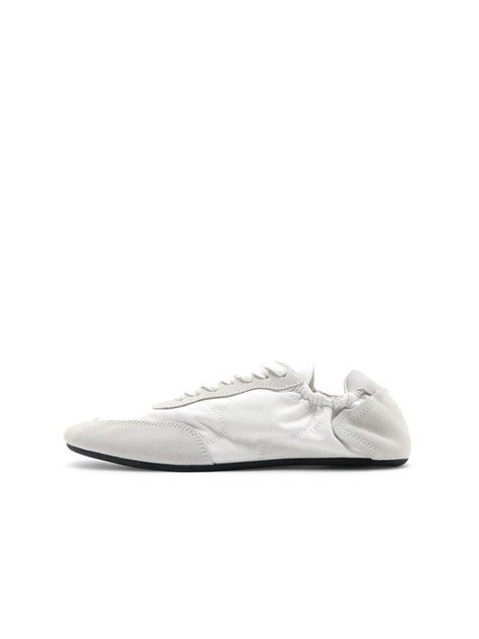 White Contrast Faux Suede And Cloth Round-Toe Lace-Up Elastic Back Sneakers Flats