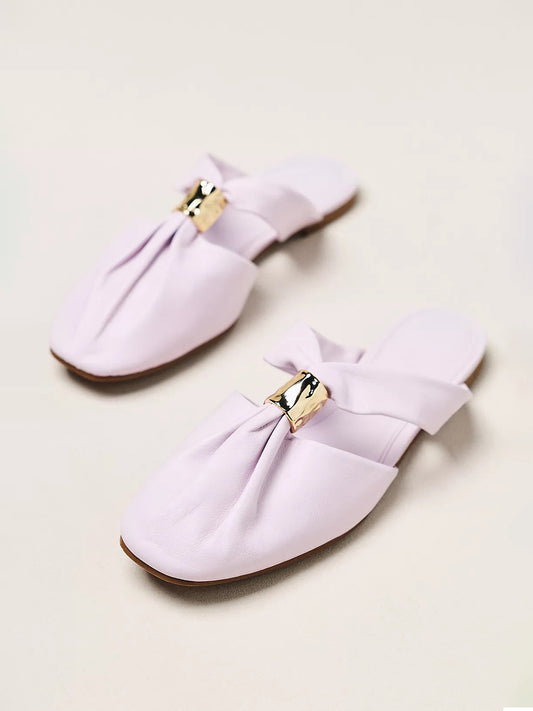 Lilac Closed Square-Toe Slip-On Backless Flats