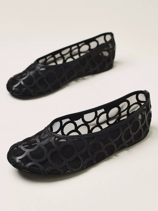 Black Vegan Leather Round-Toe Cutout With Mesh Ballet Flats