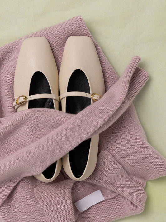 Ivory Square-Toe Buckle Mary Jane Ballet Classic Flats