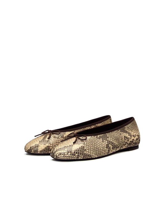 Snakeskin Round-Toe Slip-On Front Classic Bow Ballet Flats
