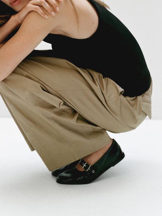Black Round-Toe Strap Closure With Buckle Ballet Flats