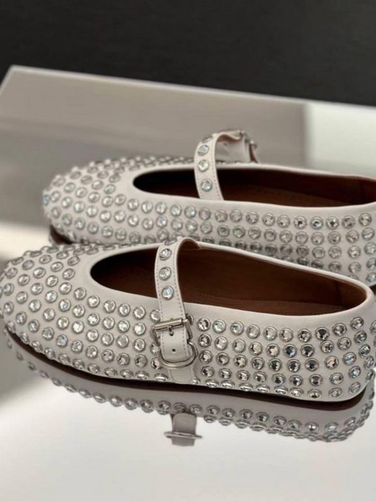 Cute White Sparkle Rhinestone Strass Ballet Flats Mary Janes