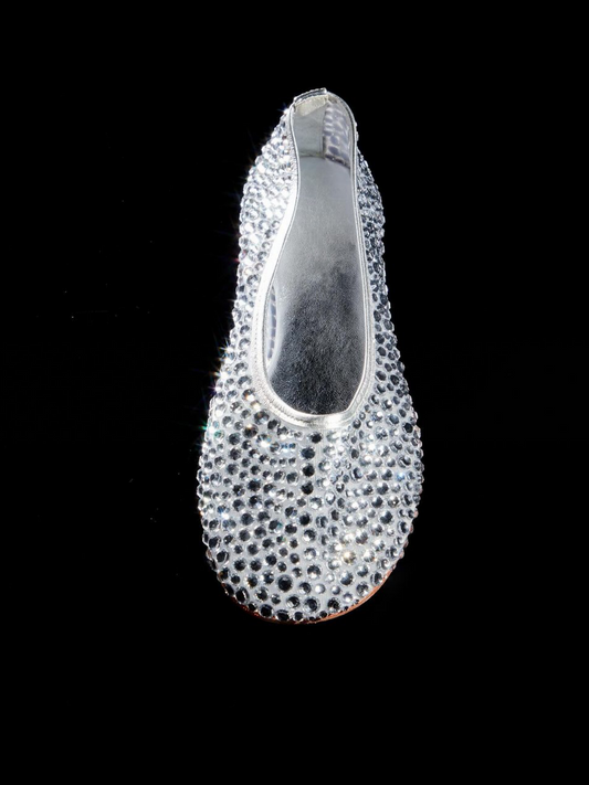 Silver Sparkle Rhinestone Ballerinas Strass Mesh Flats