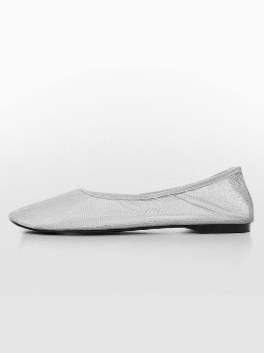 Silver Semi-Transparent Mesh Flats Elastic Ballerinas