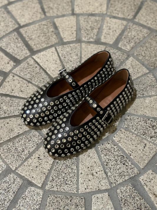 Cute Black Sparkle Rhinestone Strass Ballet Flats Mary Janes