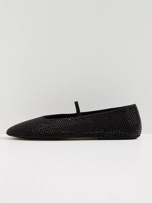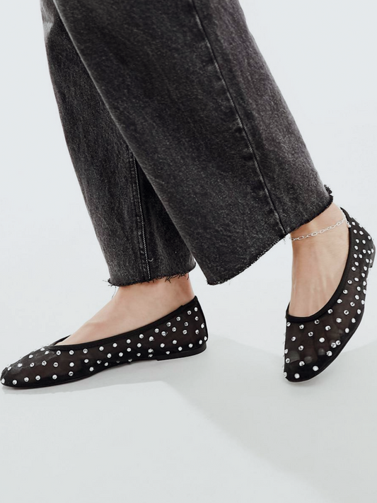 Black Sparkle Rhinestone Ballerinas Semi-Transparent Strass Flats