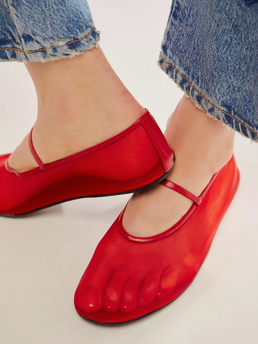 Red Semi-Transparent Mesh Ballet Flats Mary Janes
