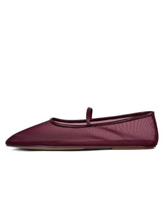 Cherry Red Semi-Transparent Mesh Ballet Flats Mary Janes