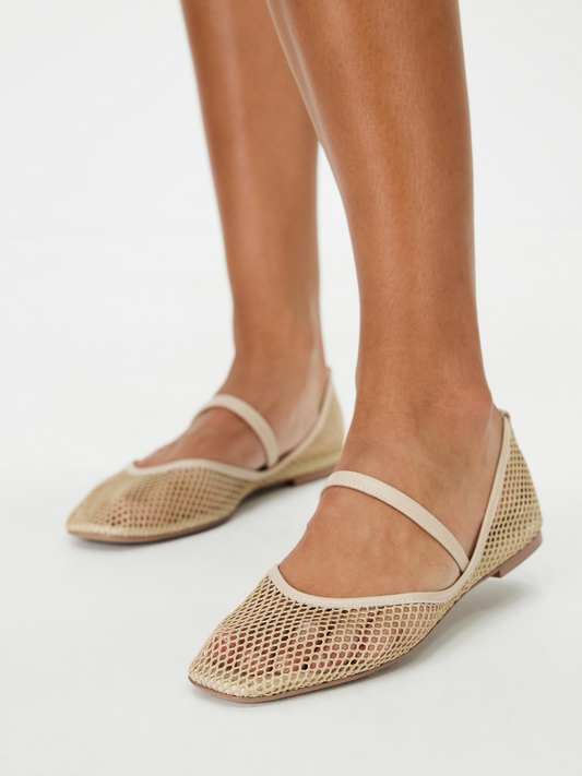 Cream Netting Round Toe Flats Slingbacks With Back Strap