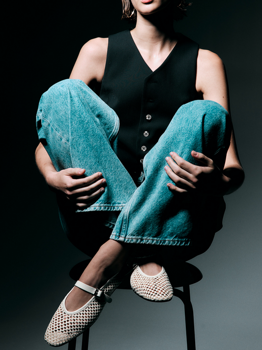 Cream Fishnet Ballet Flats Mary Janes With Square Toe