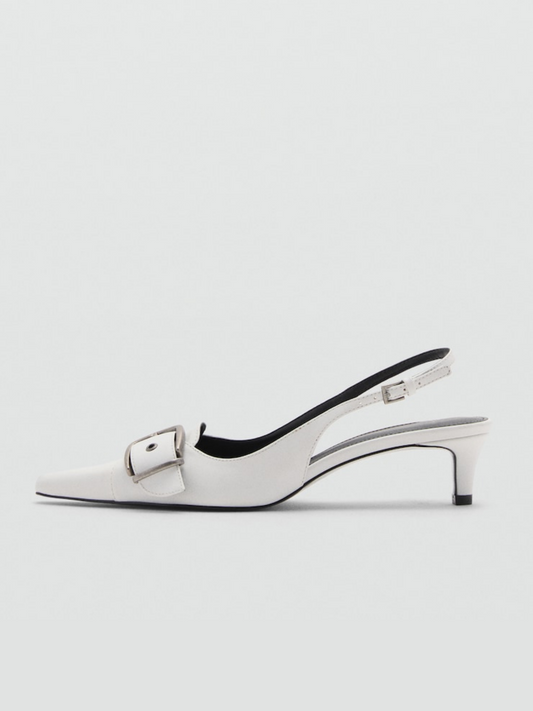 White Snip-Toe Slingback Kitten Heels With Buckle Fastening