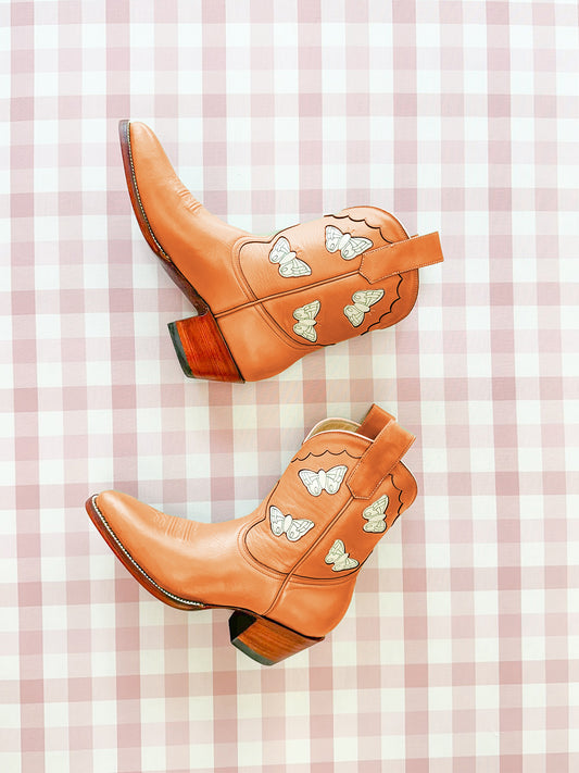 Honey Almond-Toe Butterfly Inlay Ankle Cowgirl Boots