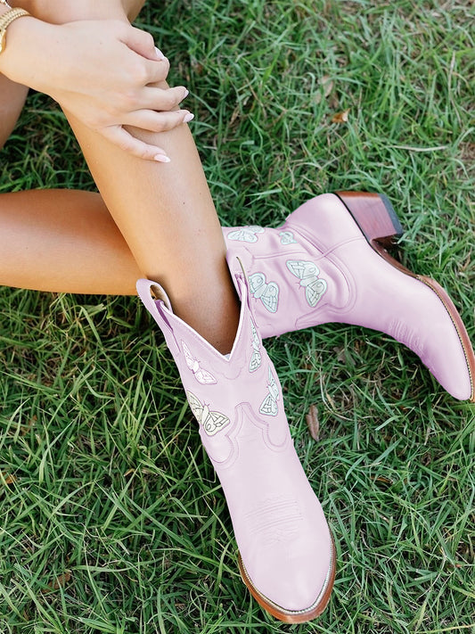 Purple Almond-Toe Butterfly Inlay Ankle Cowgirl Boots