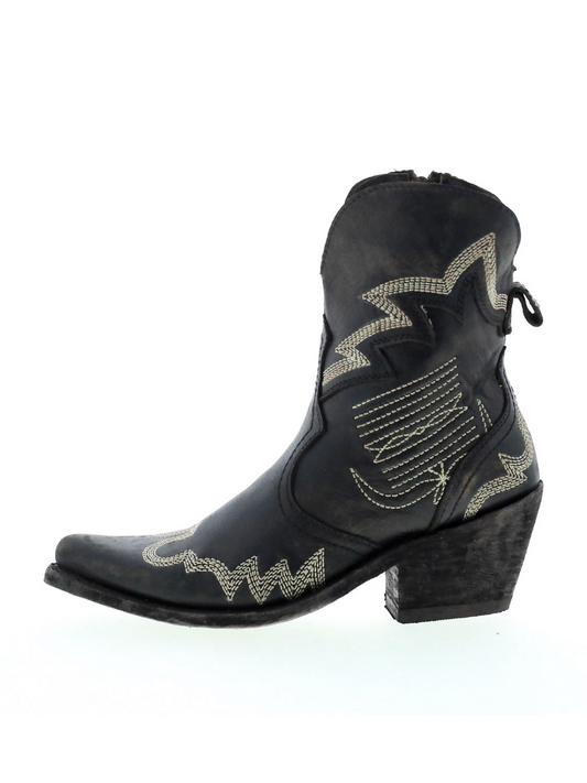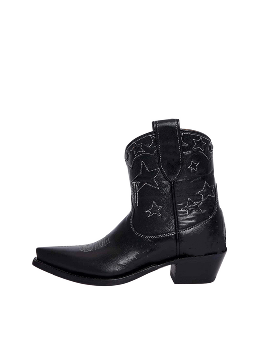 Black Snip-Toe Cowgirl Ankle Booties With Black Big Star Inlay