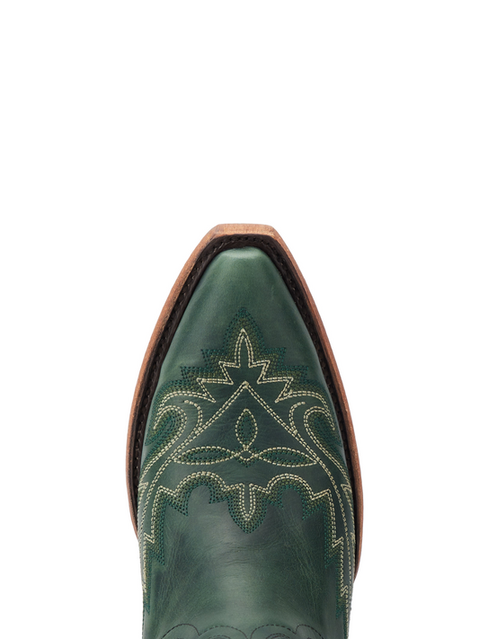 Western Snip-Toe Classic Embroidery Mid Calf Cowgirl Boots - Green