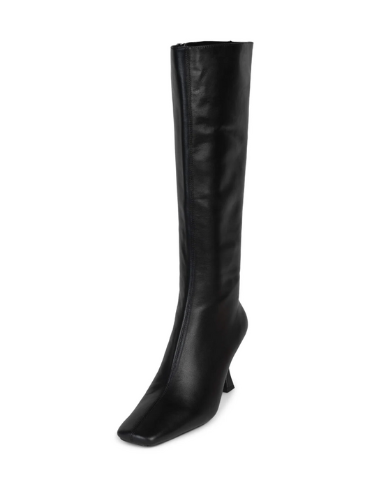 Square-Toe Full-Zip Mid Calf Stiletto Boots - Black
