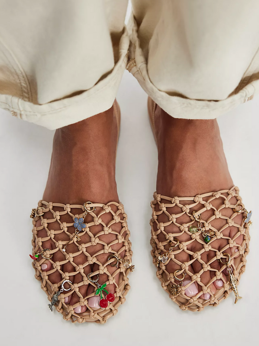 Natural Woven Vegan Leather Round-Toe Slingback Ballet Flats