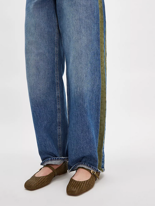 Matcha Woven Vegan Leather Square-Toe Bridge Strap Ballet Flats