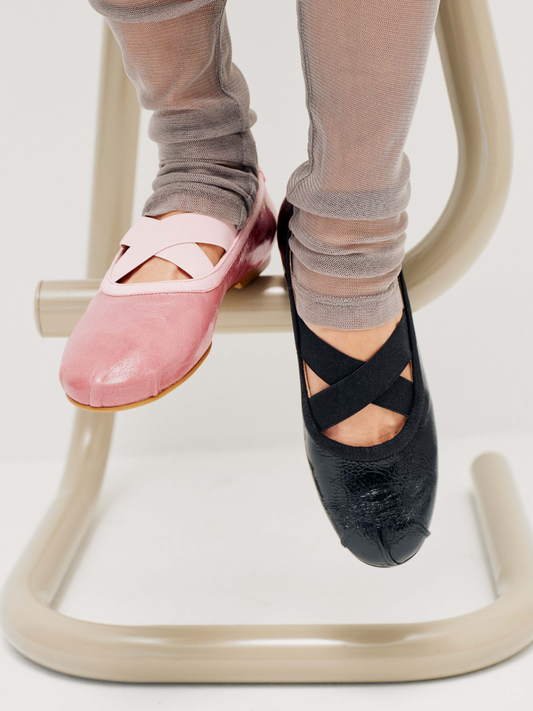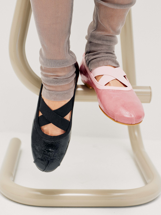 Glossy Dusty Rose Round Toe Ballet Flats With Crossed Strap