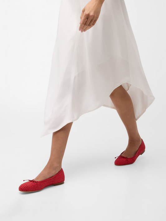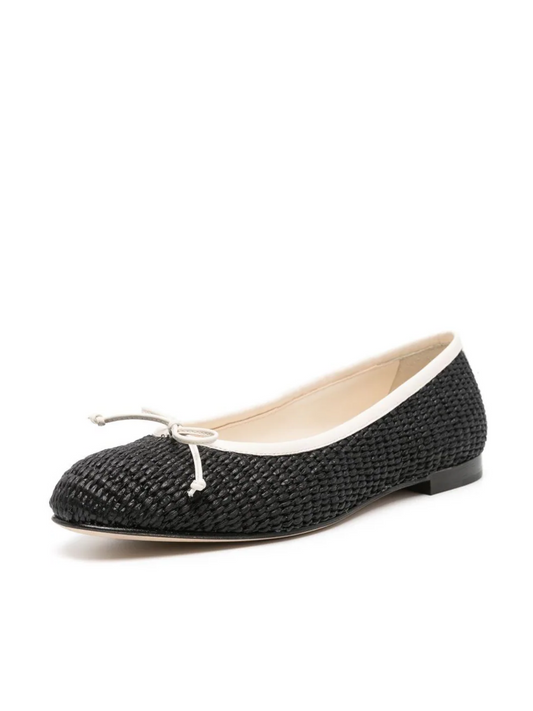 Soft Beige Woven Bow Round-Toe Ballerina Flats