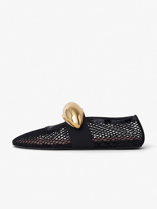 Metallic Gold Fishnet Ballet Flats Mary Janes With Buckle Strap