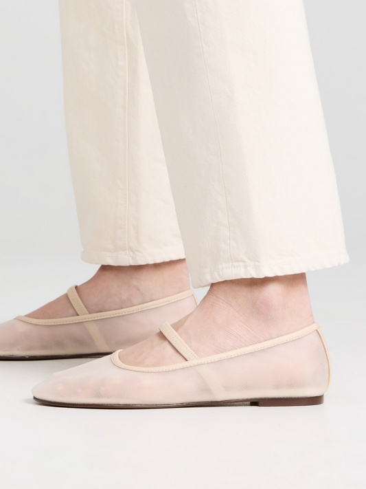 Nude Semi-Sheer Round-Toe Mesh Ballet Flats Mary Janes