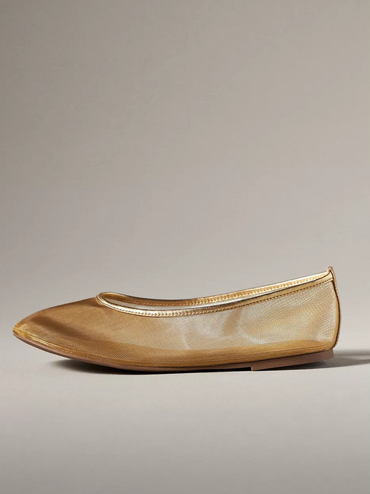 Metallic Gold Semi-Transparent Mesh Ballet Flats With Round Toe