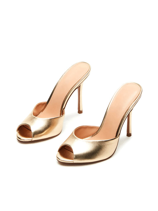 Nude Mesh Floral Multi Round-Toe Backless High Heels