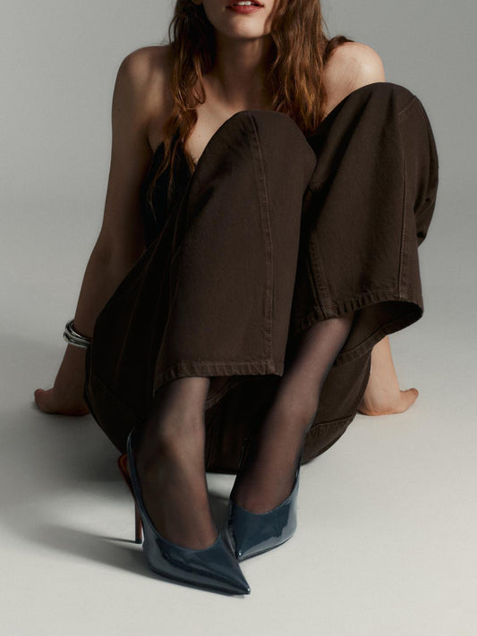 Black Eel Skin Pattern Strappy With Buckle Slingback High Heels